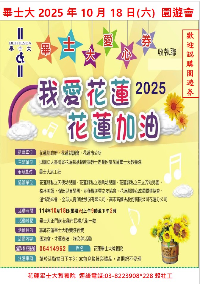 #我愛花蓮花蓮加油 #畢士大教養院 #愛心園遊會 #用行動做公益 #10月18日早上九點至下午兩點
