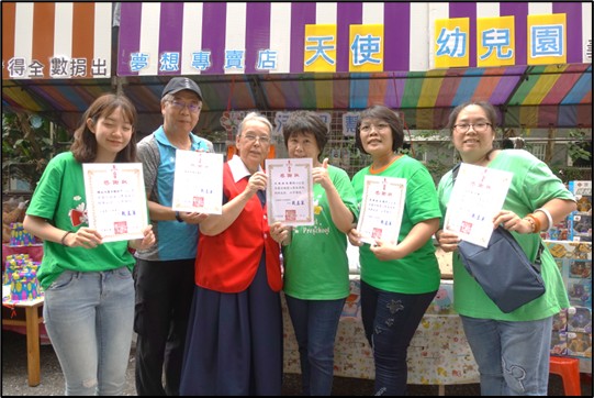 天使幼兒園劉祝冠園長率領師生30年來從不間斷參與畢士大園遊會,每年不僅設置20個攤位共襄盛舉,