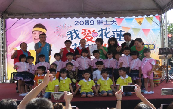園遊會開場由天使幼兒園一群小天使熱情活潑舞蹈,並以花蓮的孩子最幸福標語為園遊會拉開序幕。