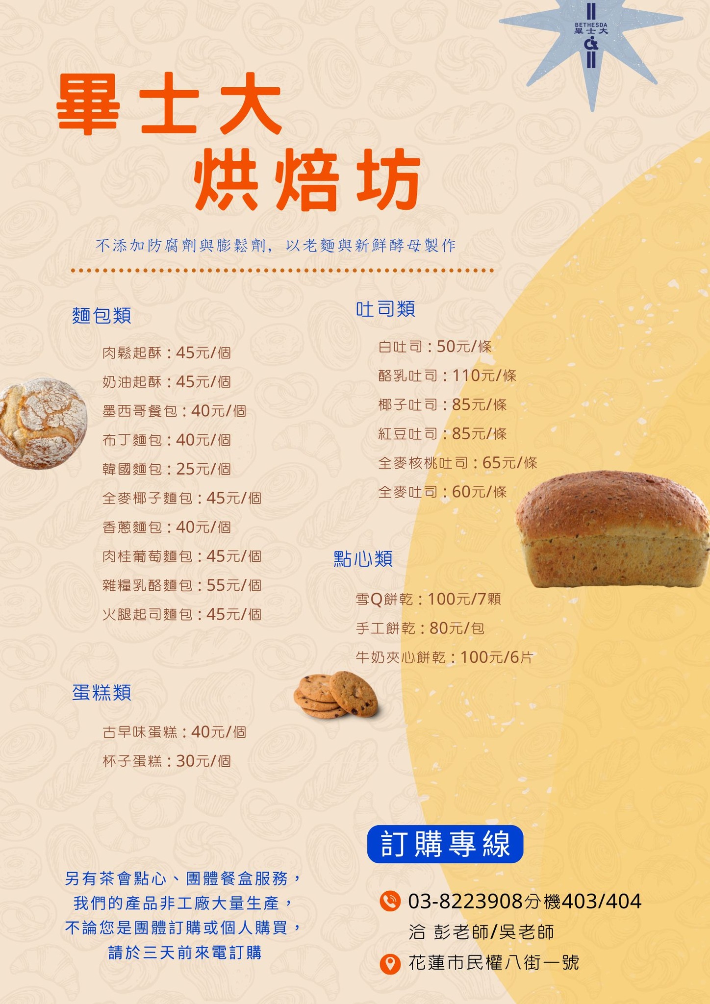 預購專線 03-8223908分機403/404 洽 彭老師/吳老師 #團體餐盒與茶會點心也可以預購喔